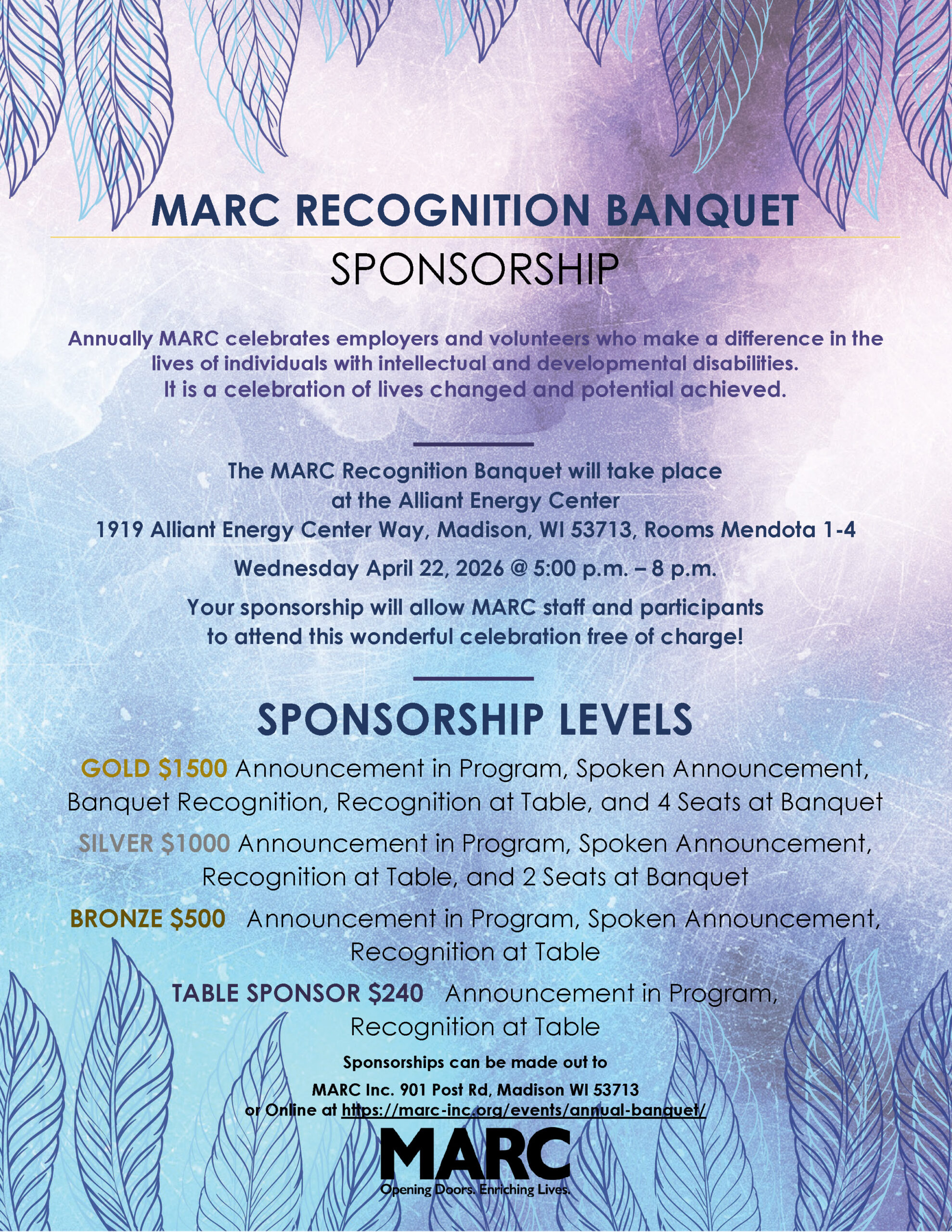 Annual Banquet The importance of CHOICE, the joy of WORK, the power of COMPASSION. Register with Printable PDF Form! NEW! Register and/or Sponsor with Online Form!